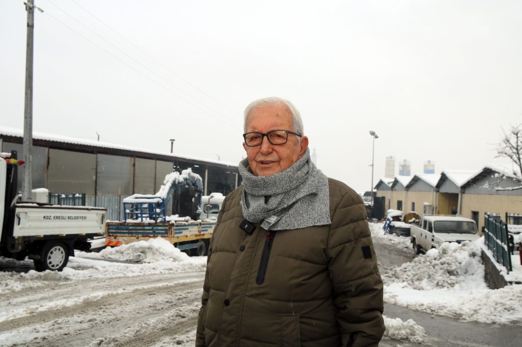 “Belediye şantiyesine geldik, bütün iş makinelerimizin bakımları burada yapılıyor. Şuanda arızalı hiçbir aracımız yok. Bütün araçlarımızın bakımları anında arkadaşlarımız tarafından yapılıyor ve sevk ediliyor. Hem kendi araçlarımız hem de müteahhitlerden aldığımız araçlar fiilen sahada çalışıyor. Araç desteği veren müteahhitlerimize teşekkür ediyorum. Şuanda Ereğli’de bütün ana arterler açık vaziyette. Kendim de bizzat arkadaşlarla dolaşıyorum, hiçbir sıkıntımız yok. Hastane yolundan, Ören, Belen, Kestaneci’ye kadar her yer açık vaziyette. Ara sokaklara da elimizden geldiği kadar giriyoruz. Esas amacımız ana arterleri açık tutmak. Şuanda belediye ekiplerimiz büyük bir gayretle çalışıyorlar. Geceleri de şantiyede yatarak, yemeklerini de buraya getiriyoruz, hummalı bir çalışma içerisinde. Bütün çalışma arkadaşlarıma, yöneticilere şükranlarımı sunuyorum. Ereğli’de işlerin aksamaması için her türlü gayreti gösteriyorlar.