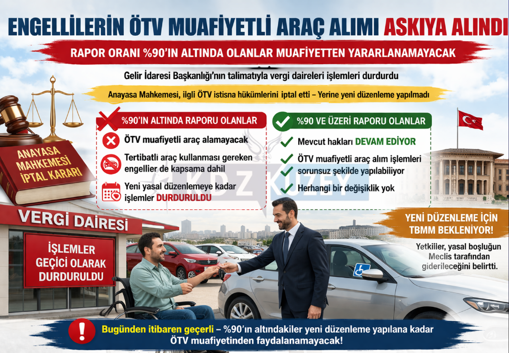Engelli bireylerin araç alımında yararlandığı Özel Tüketim Vergisi (ÖTV) muafiyetine ilişkin kritik bir gelişme yaşandı. Gelir İdaresi Başkanlığı tarafından vergi…