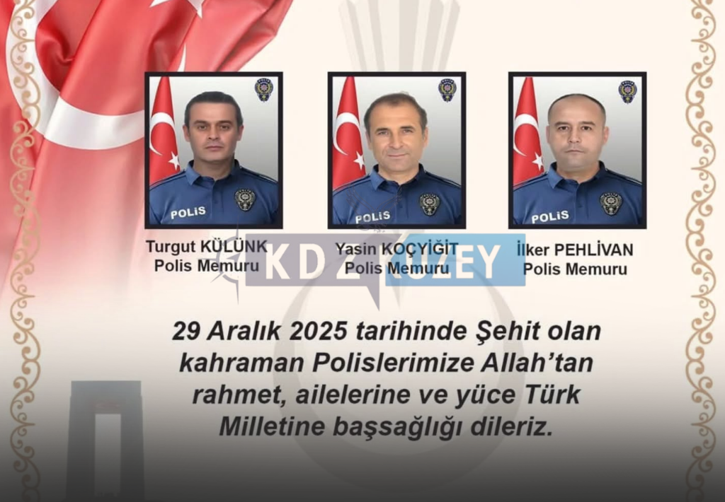 29 Aralık 2025 tarihinde görevleri başında şehit olan kahraman polislerimize Allah’tan rahmet; kederli ailelerine, yakınlarına ve aziz Türk Milletine sabır…