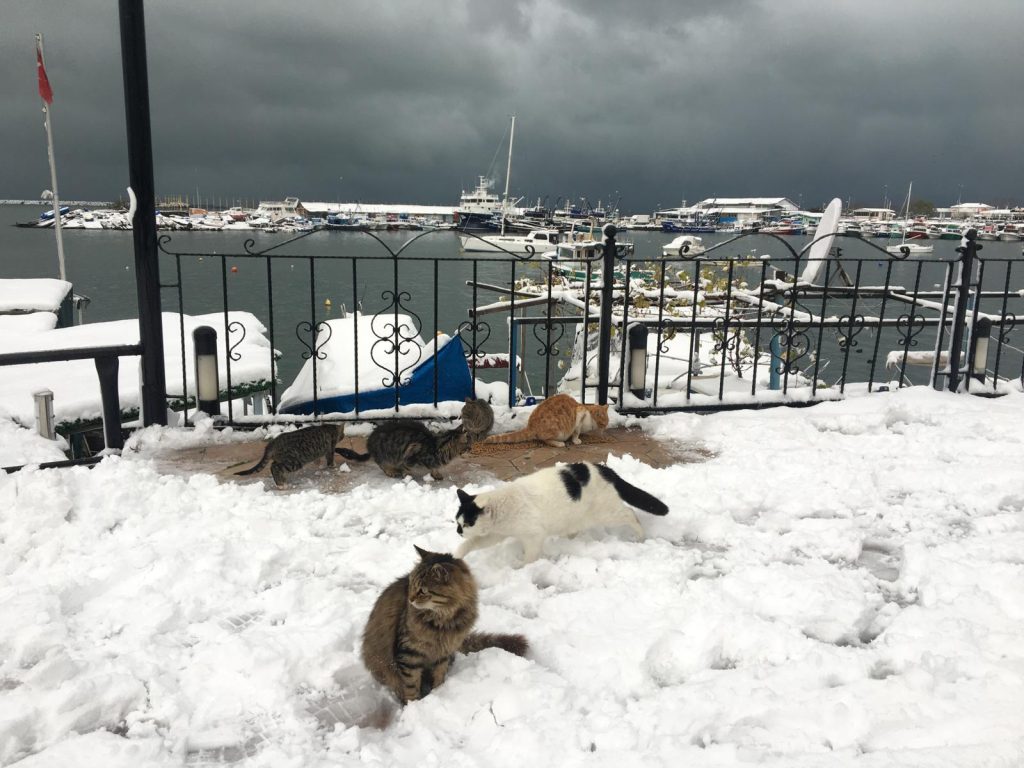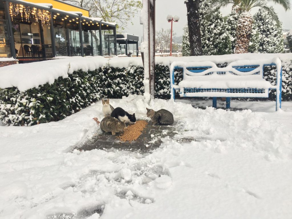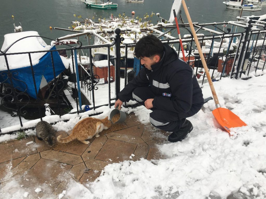 Kdz. Ereğli’de yeni yılın ilk günü kar yağışı ve soğuk hava etkisini sürdürürken Belediye Veteriner İşleri Müdürlüğü sokaktaki canları unutmadı.