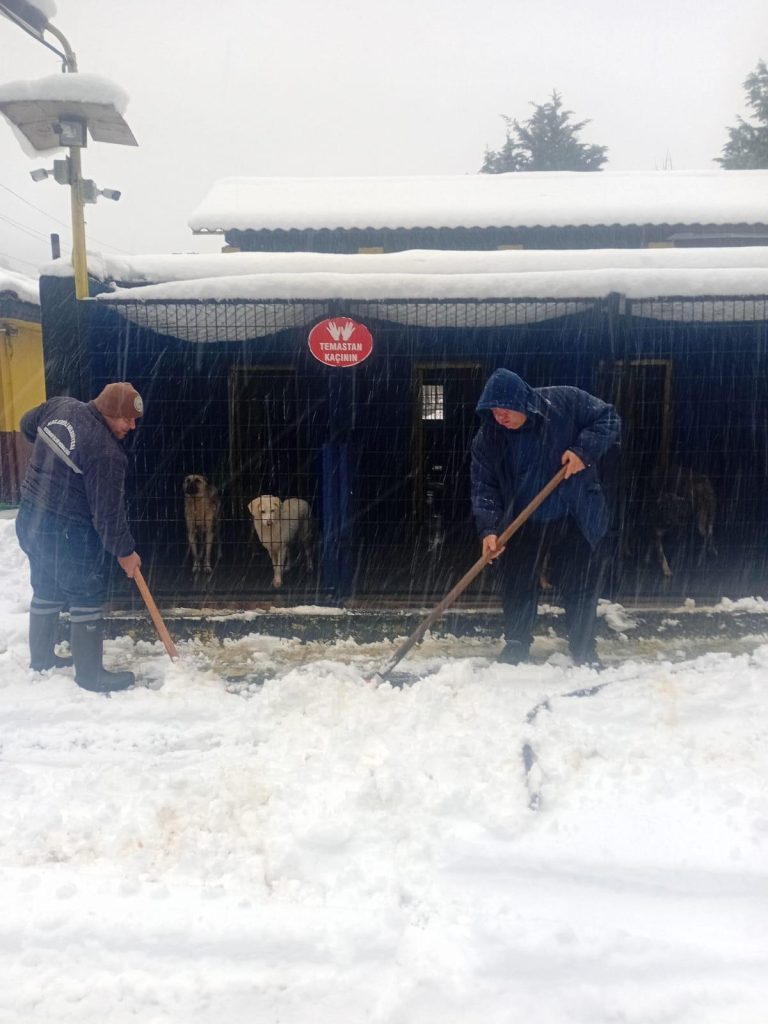 Ekipler kar yağışı nedeniyle yiyecek bulmakta zorlanan sokak hayvanları için kedi ve köpeklerin kolay ulaşabileceği park ve yeşil alanlara mama dağıtımı gerçekleştirdi.