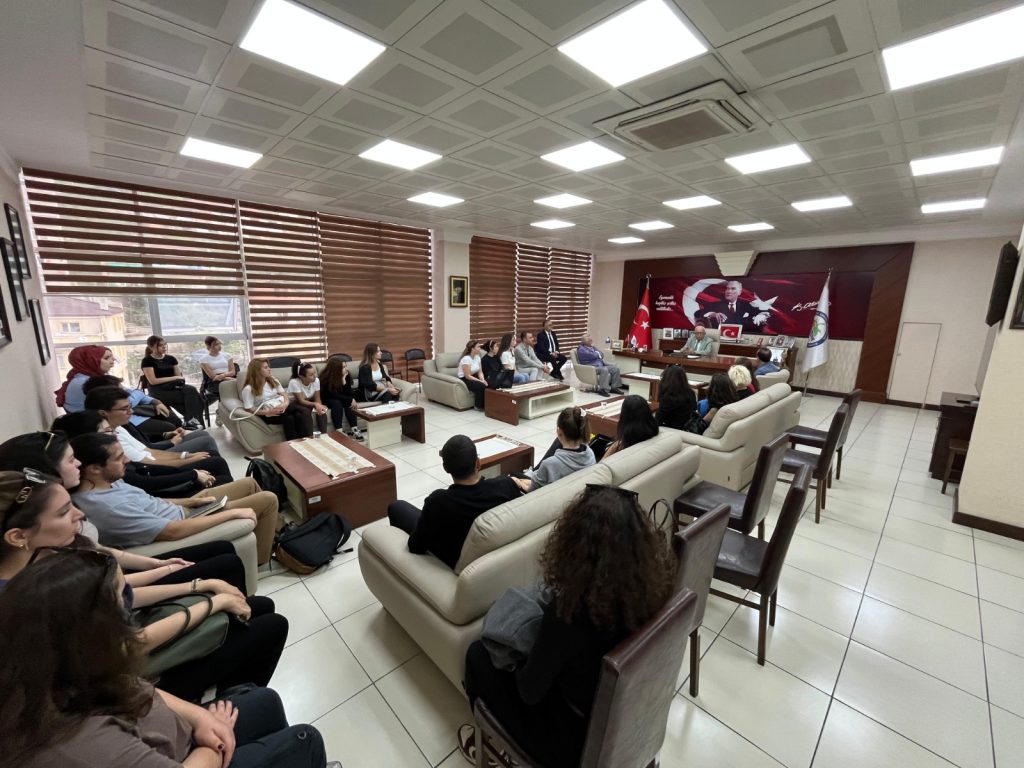 Öğrenciler ve akademisyenler ziyaret kapsamında Karadeniz Ereğli Belediye Başkanı Halil Posbıyık’ı da makamında ziyaret etti. Projeleri hakkında bilgi sunan ekip, kent üzerine sohbet etme fırsatı buldu. Öğrenciler, dönem sonunda tamamlayacakları mimari proje maketlerini Kdz. Ereğli’de sergilemek istediklerini belirterek memnuniyetlerini dile getirdi.