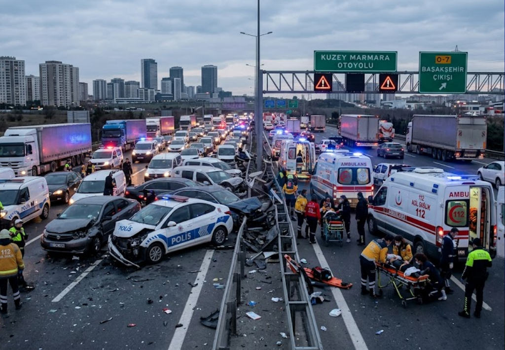 Kuzey Marmara Otoyolu Sancaktepe mevkiinde seyir halindeki bir yolcu otobüsünün tıra arkadan çarpması sonucu meydana gelen kazada 10 kişi yaralandı.