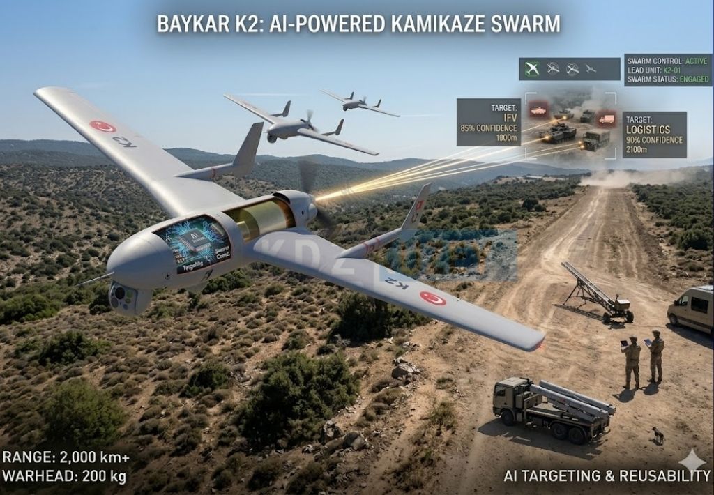 Baykar, savunma sanayisinde dengeleri değiştirecek yeni yapay zeka destekli kamikaze insansız hava aracı K2’yi tanıttı. Sürü uçuşu kabiliyeti ve hassas…